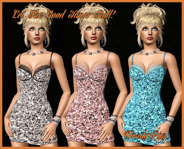 2014 is here, so let the good times roll! Here is the ultimate party dress for 2014, guaranteed to make your simmie so irresistible, she will have a great time wherever she goes. This dress is available in three versions and is recolorable in three channels. It is base game compatible.